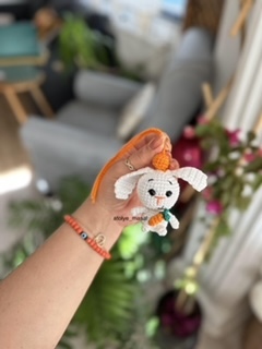 This amigurumi bunny is perfect for beginners and experienced crocheters alike. Use it as a car mirror charm, a keychain, or a sweet handmade gift. It’s quick to make and fun to customize!