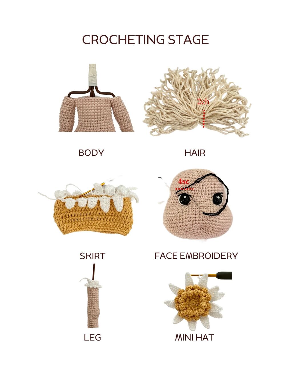 ✅ Complete crochet pattern for the doll, her clothes, and accessories